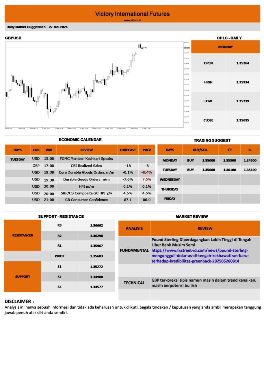 DAILY MARKET SUGGESTION GBPUSD – 27 MEI 2025